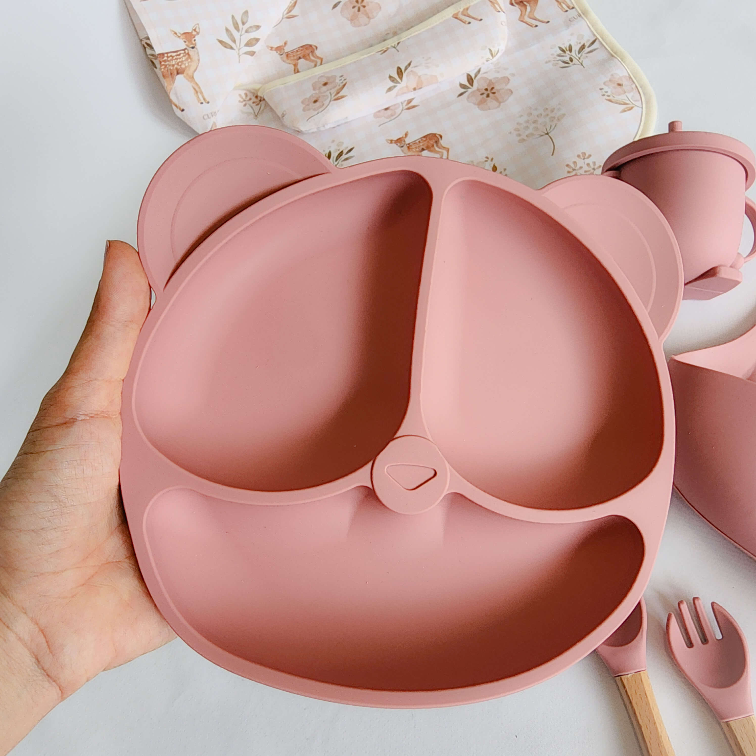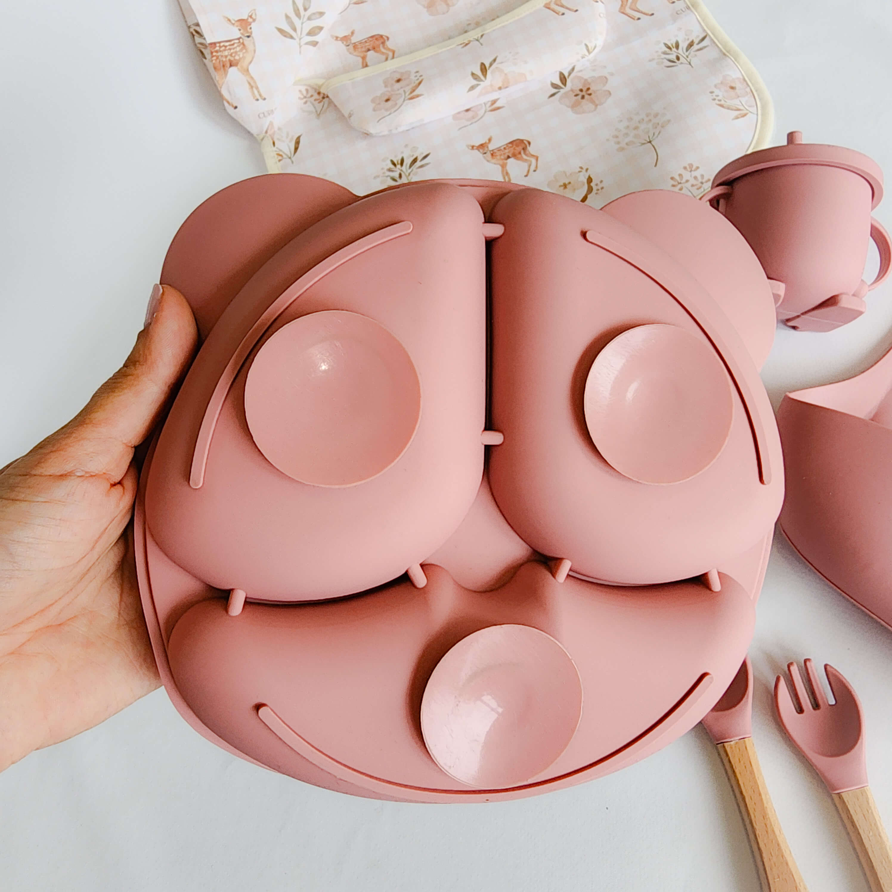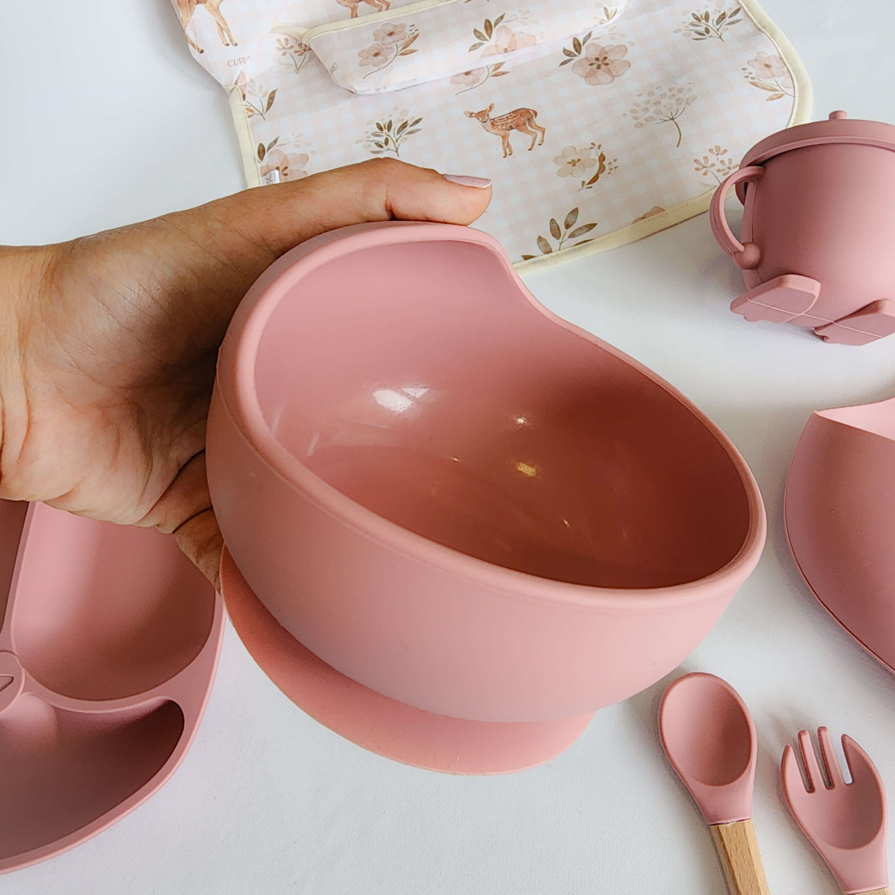 El Set Primeras Comidas Silicona 7 piezas es libre de BPA, apto lavavajillas y microondas. Este set es ideal para acompañar el inicio de la alimentación complementaria de tu bebé, de facil agarre y con platos con ventosas para dejarlos fijos en la mesa.